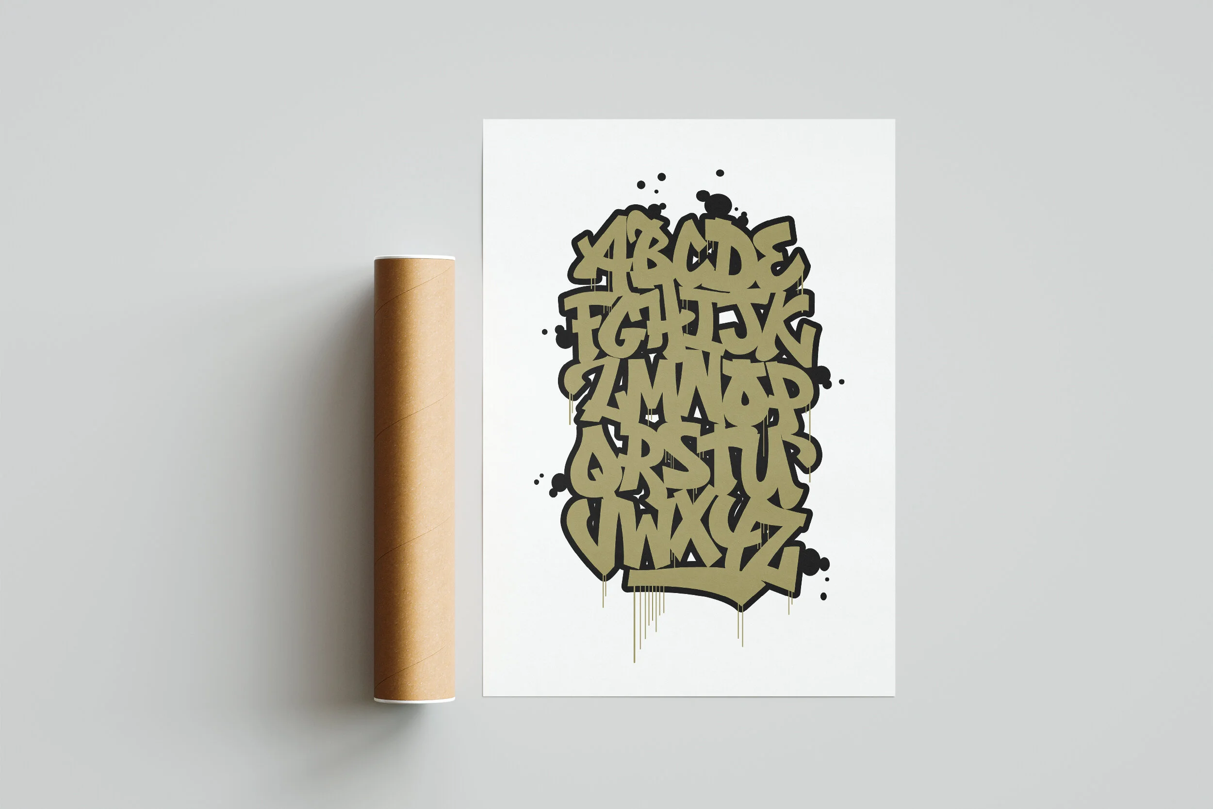 I love letters and graffiti, so I designed this graffiti alphabet and made a limited edition of inkjet prints. The print came in two color schemes, and I also embellished a few with spray paint to give it a little more grit and texture. There are a few left in my shop.